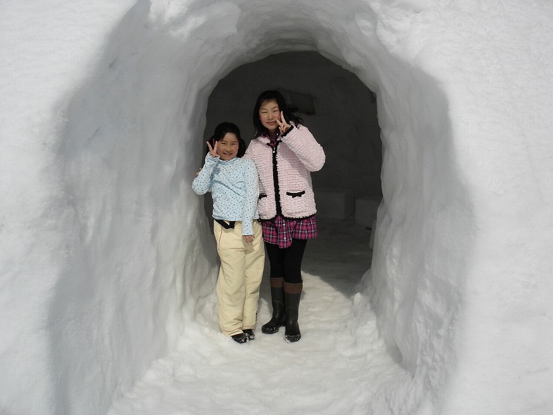 娘2人はかまくらがあるのにビックリしています。