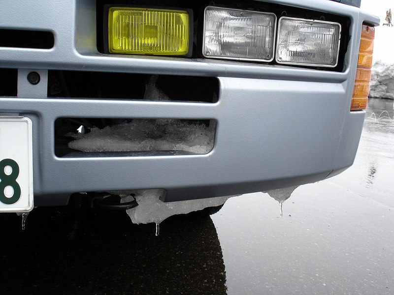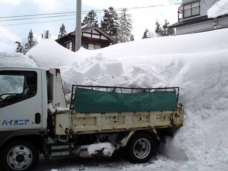 2トンダンプでバックし、荷台を上げると雪がそのまま落下し
